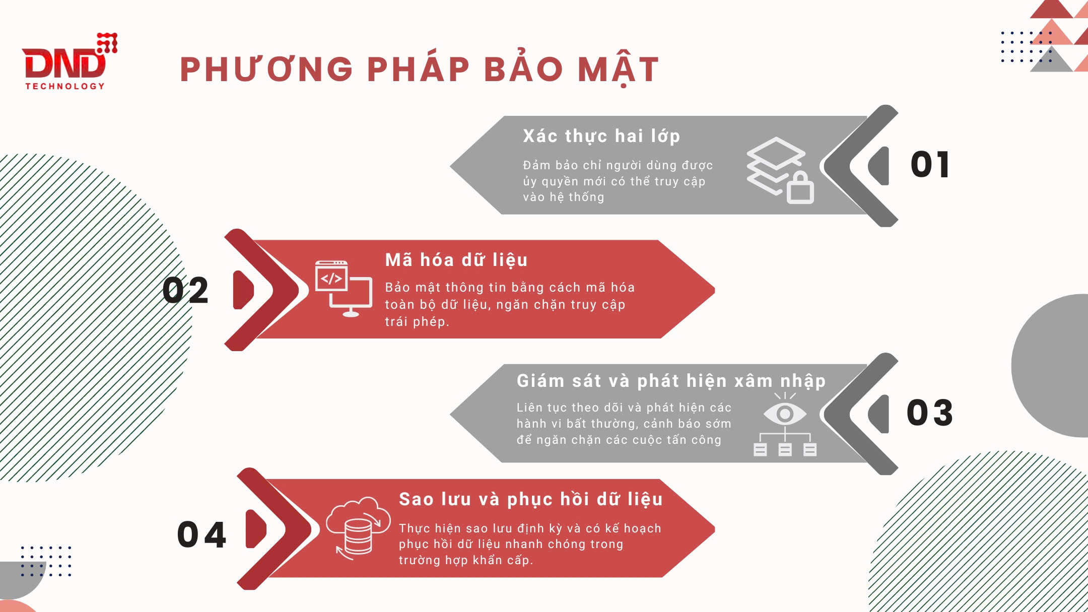 DND sử dụng các biện pháp bảo mật tiên tiến để bảo vệ hệ thống của bạn khỏi các cuộc tấn công và rủi ro tiềm ẩn. Những biện pháp này bao gồm: