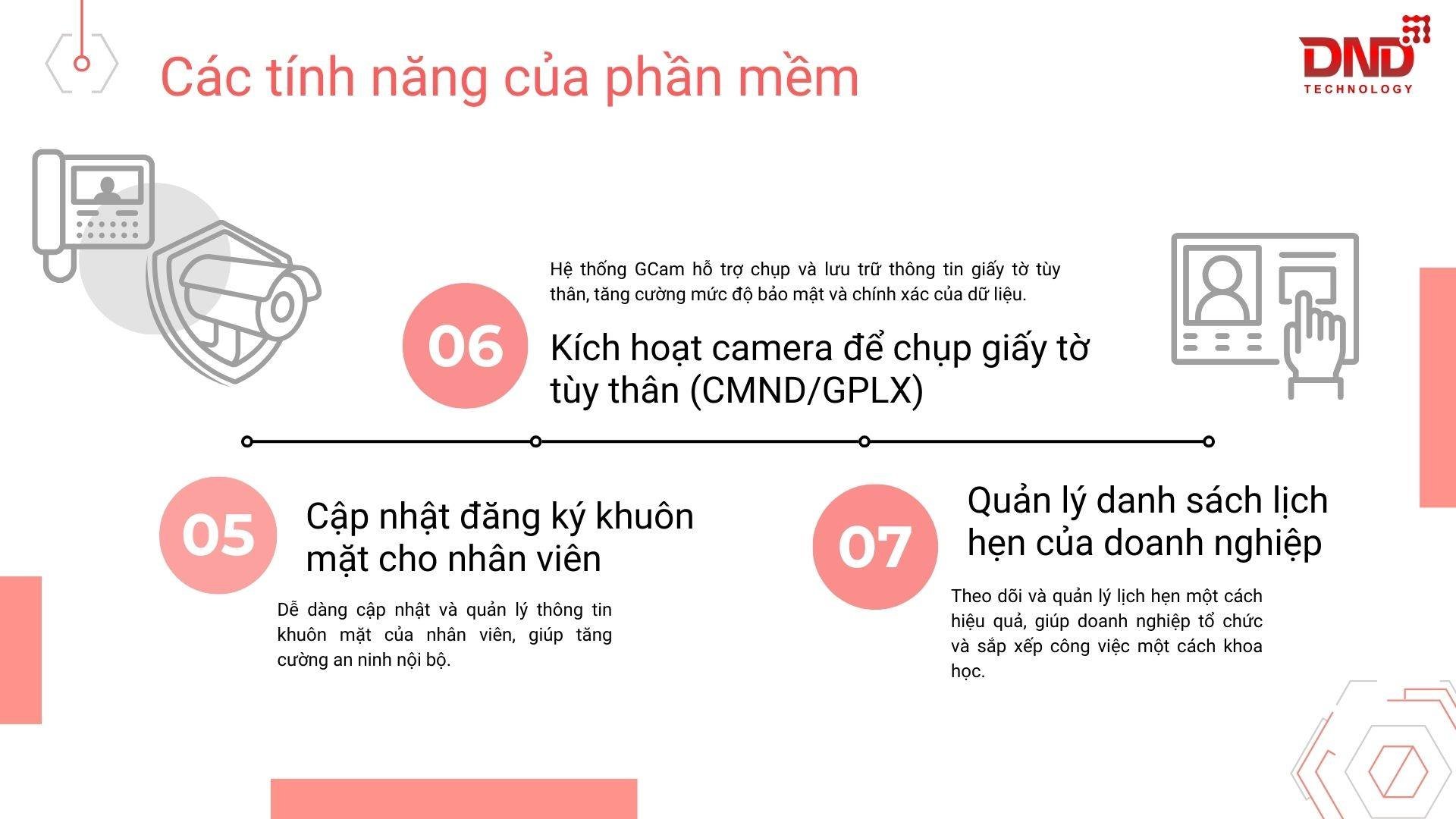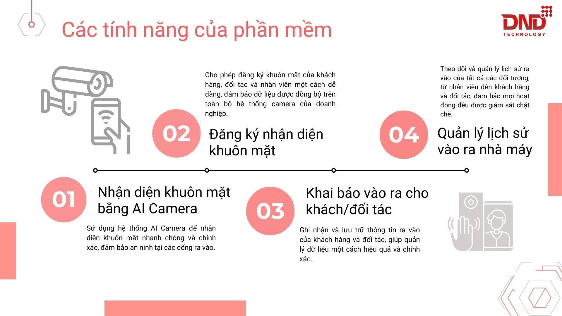 Phần mềm quản lý an ninh cổng ra vào là một giải pháp tiên tiến được thiết kế để nâng cao mức độ an toàn và hiệu quả quản lý ra vào của doanh nghiệp. Giải pháp từ DND sử dụng hệ thống AI Camera và GCam giúp nhận diện khuôn mặt một cách chính xác, hỗ trợ khai báo thông tin và quản lý dữ liệu vào ra một cách toàn diện. Công nghệ nhận diện khuôn mặt tiên tiến kết hợp với khả năng chụp và lưu trữ thông tin giấy tờ tùy thân, mang lại một hệ thống an ninh mạnh mẽ và chính xác.