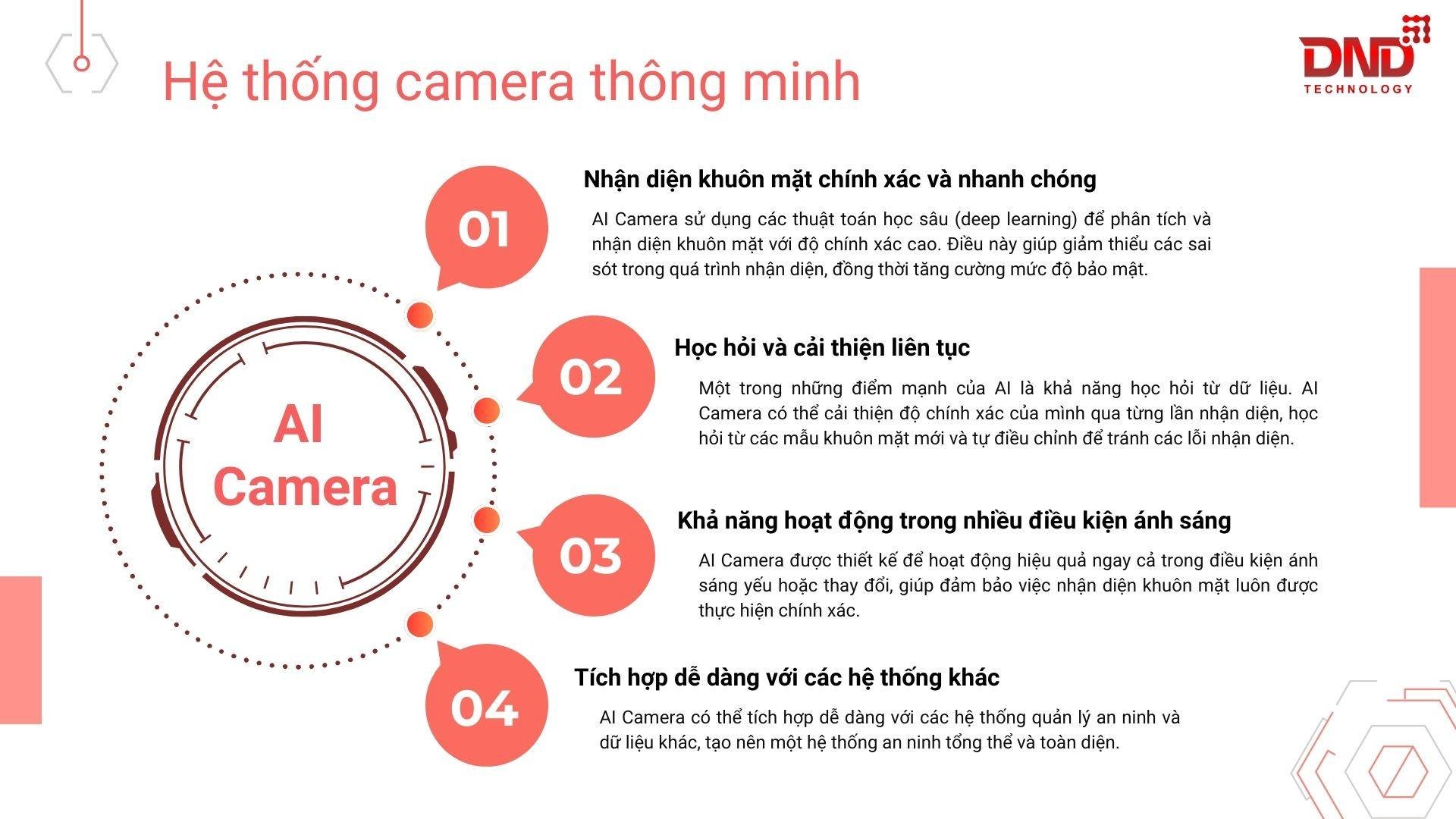 AI Camera (Artificial Intelligence Camera) là một trong những bước tiến vượt bậc trong lĩnh vực công nghệ an ninh. Dưới đây là những đặc điểm nổi bật và ưu điểm của AI Camera so với các công nghệ khác: